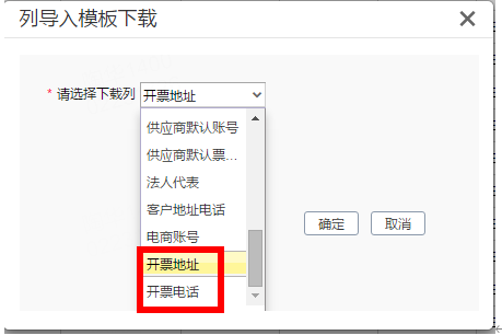 此时可以使用往来单位的列导入功能更新往来单位的【开票地址】和【开票电话】。