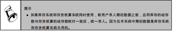 期初数据:账簿都应有期初数据,以保证其数据的连贯性,初次使用时,应先输入全部末级存货的期初数据。如果是第一次使用,必须使用此功能输入各存货的期初数据。如果系统中已有上年的数据,在使用【结转上年】后,上年各存货结存将自动结转到本年。如果您是年中使用,比如您是 9 月开始使用,您可以录入 9 月初各存货的结存数据;否则可以直接录入各存货的年初结存。