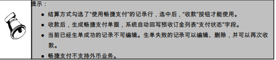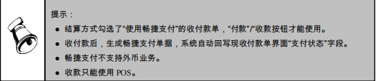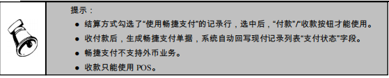 选择需要收款的记录行,点击“收款”按钮,通过 POS 通道进行收款,系统自动生成畅捷支付单据。