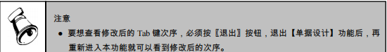用鼠标单击工具栏中的〖顺序〗按钮,单据的表头项目中列示 Tab 键的次序号,用户可直接修改次序号,调整单据录入的顺序