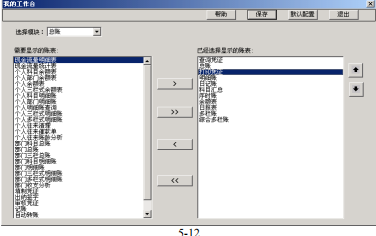 2、选中相应模块中常要的报表或功能菜单,点击右箭头,保存后,退出;