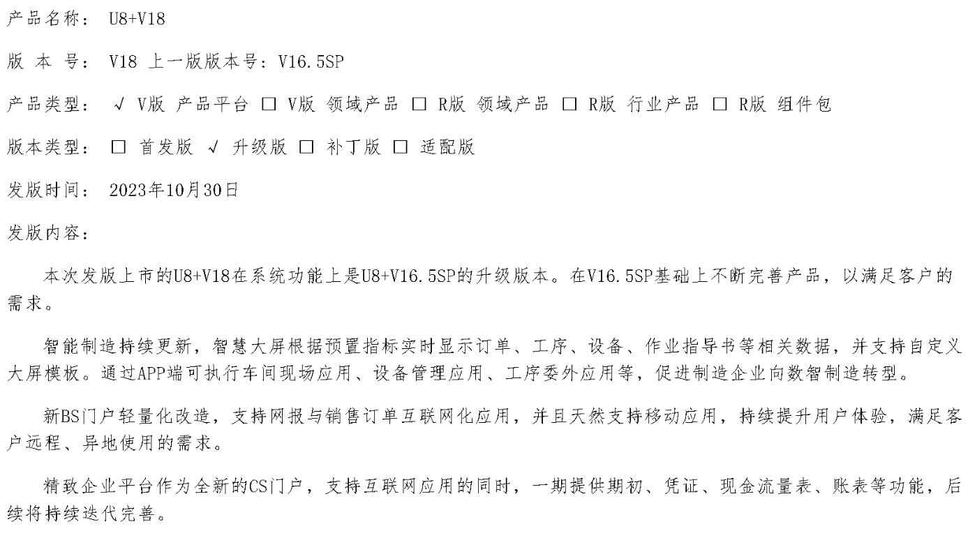 2023年11月1日,U8+V18发版-客户测试版