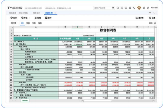 提供财务人员常用的财务核算报表、税务申报表,云管理报表。支持用户根据实际需要定制企业的个性化报表。支持辅助核算报表,如部门资产负债表,项目利润表等。支持编制多公司管理报表。