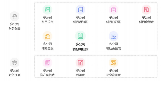 (6) 总公司通过多公司账表时实监管各子公司经营情况。通过多公司自定义管理报表进行多公司财务数据统计分析,指导企业经营。