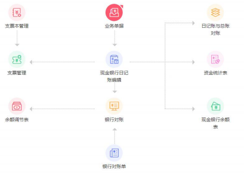 单据报表、现金银行日记账、日记账与总账对账、资金统计表、现金银行余额表