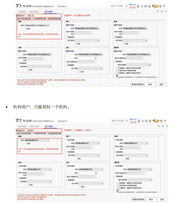 总部用户,在公共数据权限中,可以授权多个机构。