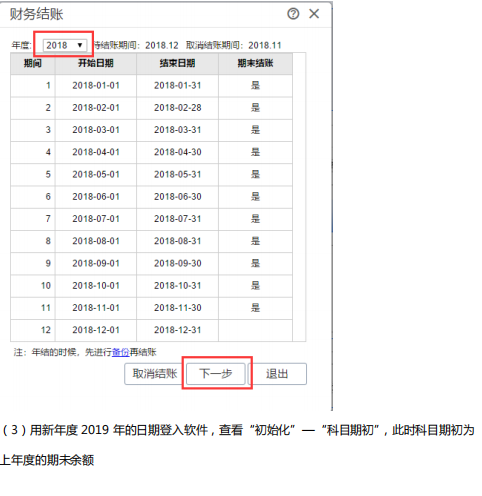 (1)2018 年 12 月业务模块结账,“系统管理”—“基本设置”—“业务结账”,当业务 12