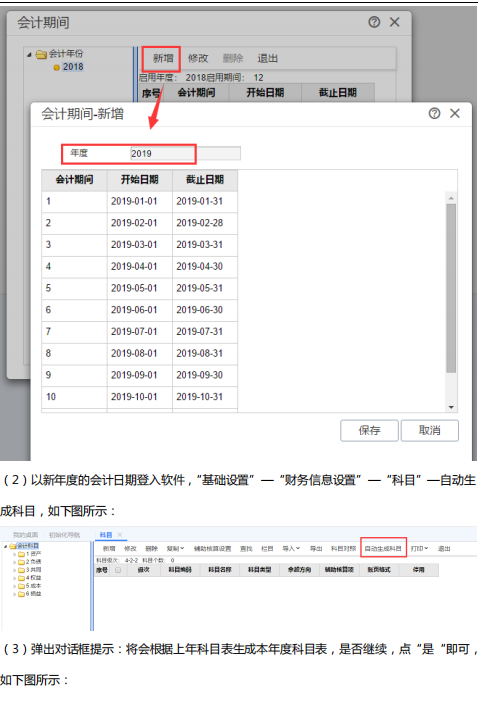 (1)由于本年度业务没有完成,12 月份业务没有结账,则不会自动生成下一年度的会计期间,但我们又需要进次年去录入单据,此时我们需要手工增加会计期间,操作步骤:依次点击“系统管理”—“基本设置”—“会计期间”,如下图所示: