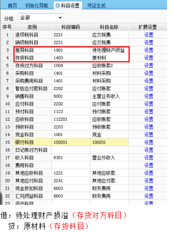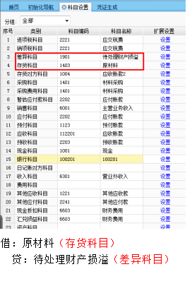其他入库单的业务类型为“盘亏”时,按照金额带出贷方“存货科目”和借方“差异科目”