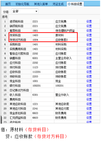 当其他入库单的业务类型为“其他”、“受赠”、“普通零售”、“退库”时,按照金额带出借方“存货科目”和贷方“存货对方科目”