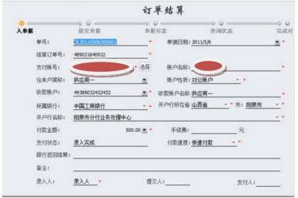1. 单据录入:录入付款请求的单据,录完后的状态为“录入完成”。该过程只是信息录入,因而无需通盾验证。