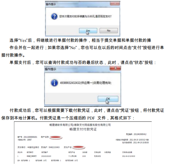 2. 提交单据:向畅捷支付提交付款请求,需要验证通盾及支付密码。完成后的状态为“提交成功”。
