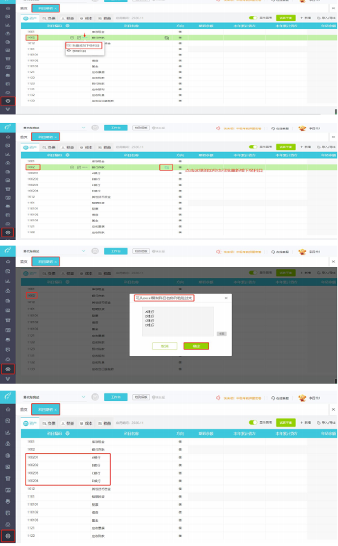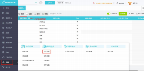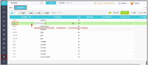 单个增加下级科目:点击【设置】-【科目期初】,鼠标放到一级科目上,点击【+】按钮,新增明细科目。