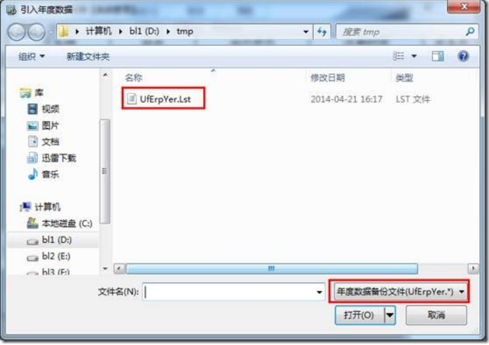 一、 用记事本打开年度账备份信息文件UfErpYer.Lst,查看账套号和年度账会计年度