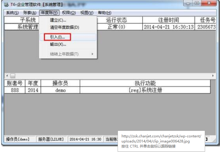 四、 点击“年度账”菜单下面的“引入”,选择年度账备份信息文件