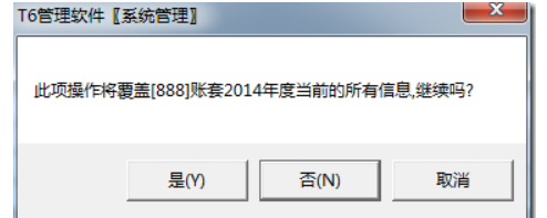 点击“是”,提示会覆盖当前账套2014年度账信息: