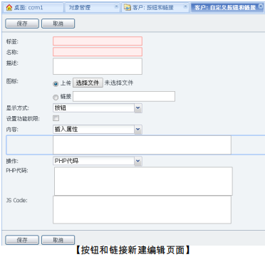点击“新建”,进入客户的按钮和连接的编辑页页面。