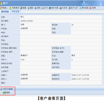 在按钮和链接的列表页面,点击[删除]按钮,即可删除此按钮、链接。如何使用自定义按钮/链接按钮和链接设置好后,进入 CRM 的客户查看页面: