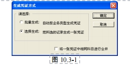 2)在"批量生成"和"选择生成"之中只能任选一种,系统默认为"选择生成"。"批量生成"是指将"自动生成凭证表"中的记录一次全部生成凭证;"选择生成"是指根据用户选择生成凭证的记录,生成凭证。