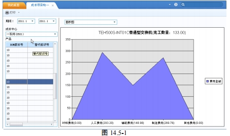 如果选择具体某一种费用,如材料费用,则显示明细数据进行对比,如果选择全部费用项目,则显示各费用项目的汇总数据进行对比。参考产品成本差异分析。