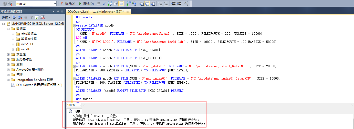 2、直接在master上创建SQL脚本,脚本参考(用友NCCloud创建SQL脚本)