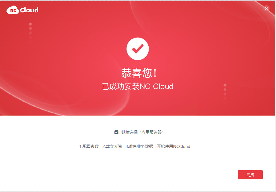 3、安装完成,如下图所示,下一步准备配置“应用服务器”
