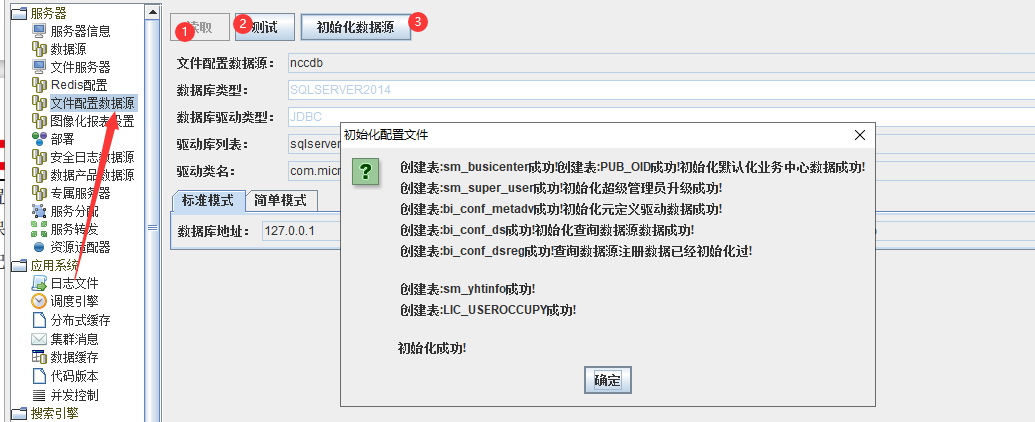 4、文件配置数据源,这个略重要,注意看,要提示初始化成功方可!
