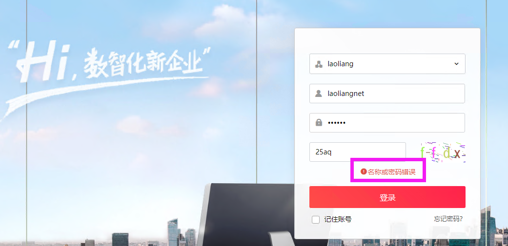 此刻有踩坑,(一直提示“名称或密码错误”)如下图所示;