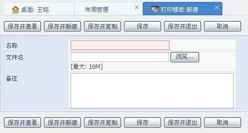 点击“新建”,打开模板的新建页面,上传制作好的打印模板。