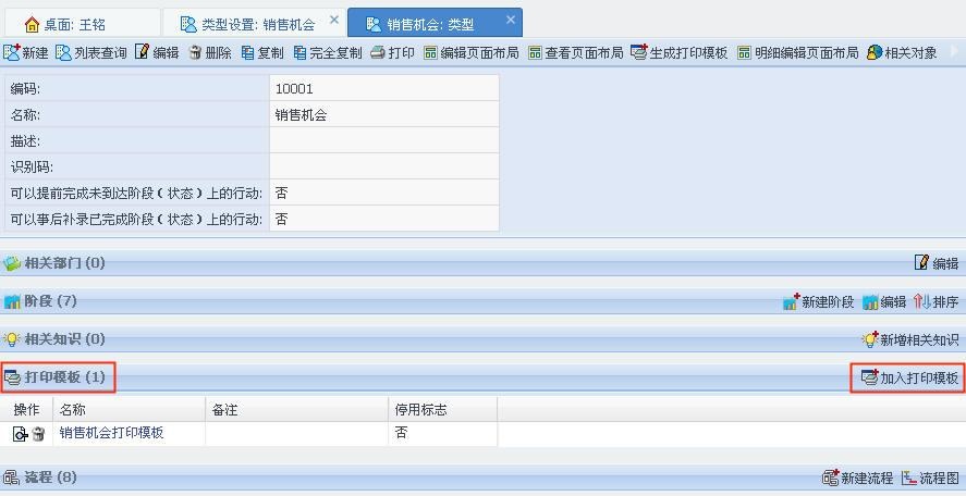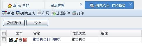 1. 布局管理中,为对象新建打印模板。(以销售机会为例)