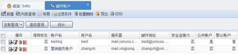 在系统配置中,点击邮件设置邮件账户,进入邮件账户列表。