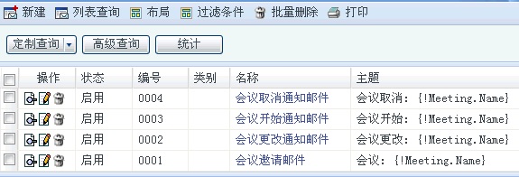 [过滤条件]:设置邮件模板列表页面可供查询的属性。