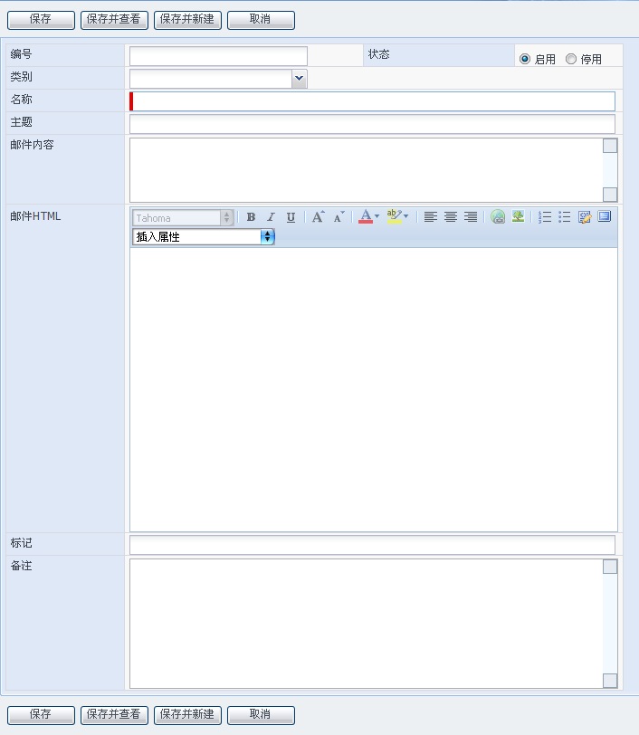 状态:邮件模板状态,默认为启用。