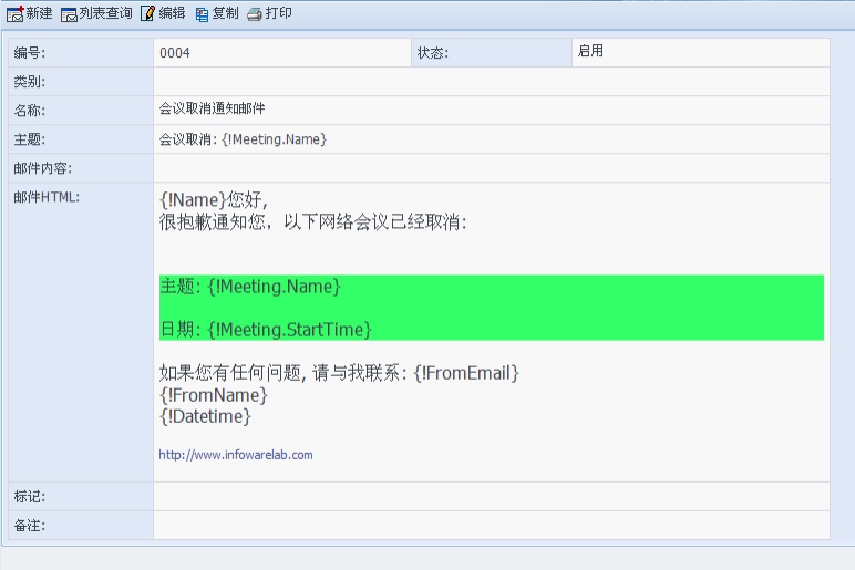 备注:邮件模板备注信息。