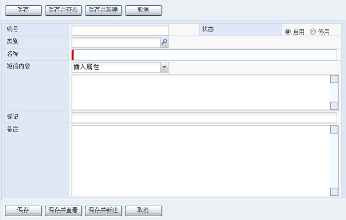 在短信分类列表页面,点击“新建”按钮,打开短信分类新建编辑页面。