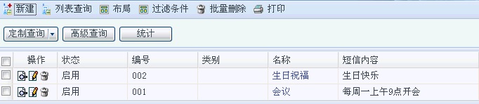 [布局]:设置短信模板列表页面的显示属性和信息显示行数。