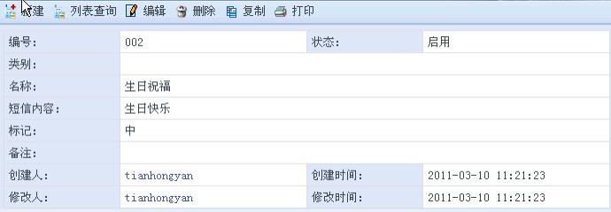 [打印]:打印短信模板信息。