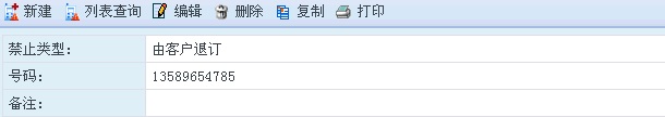 [复制]:复制当前的禁发短信信息到新建页面。