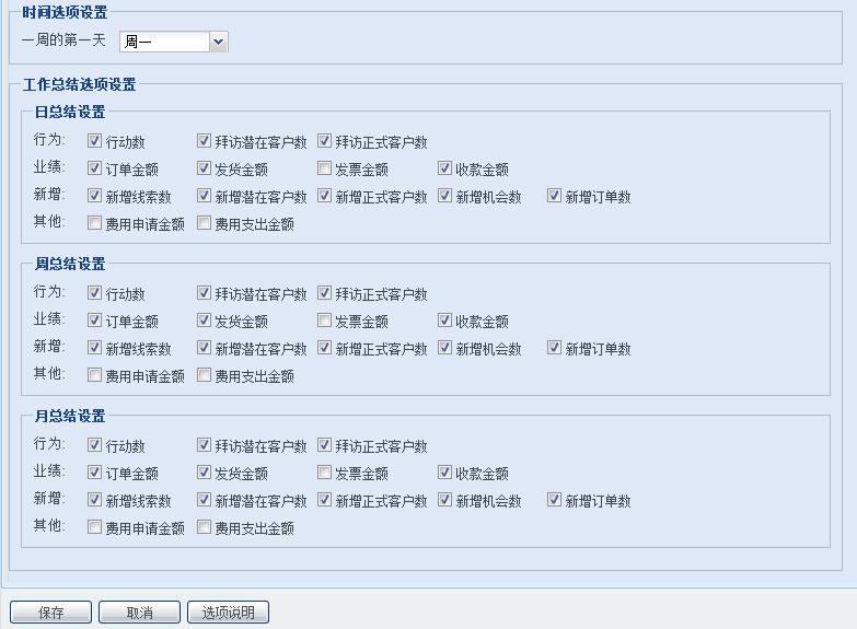 工作总结选项设置: