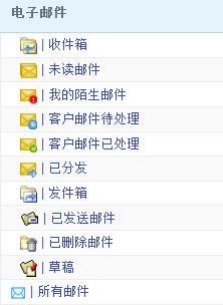 点击各邮件文件夹,进入相应的邮件列表,以收件箱为例说明: