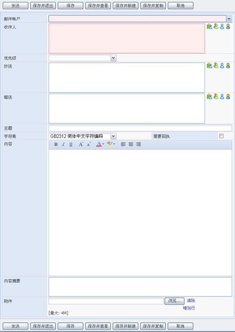 [保存并新建]:保存邮件并打开新建邮件空白页面。