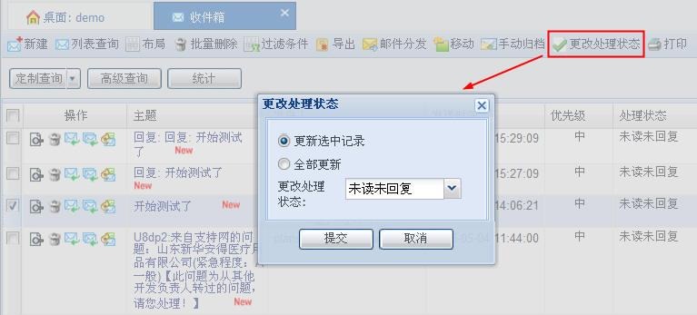 [更改处理状态]:将邮件当前的处理状态更改为另一个处理状态。