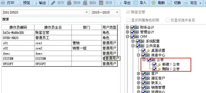 公告不能随意新建,它的新建需要读取功能权限,只有具体“新建公告”权限的操作员才可以新建一条公告。同样公告的删除也需要读取对应的功能权限。