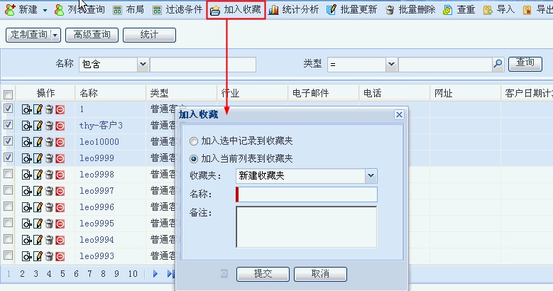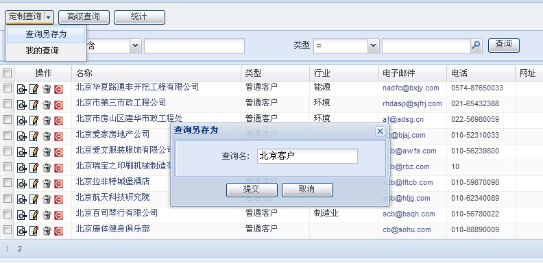现假设您已经通过查询功能过滤出一部分客户信息,点击[定制查询]按钮,选择[查询另存为],输入查询名称后点击[提交]