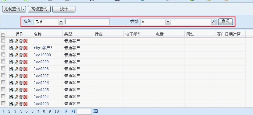 如图,在客户的列表页面点击[高级查询]按钮,系统将弹出高级查询操作窗口。