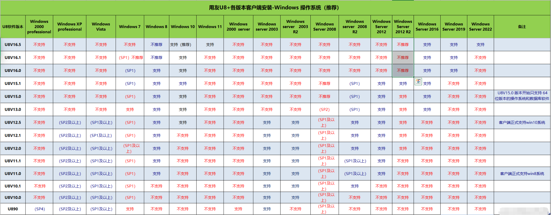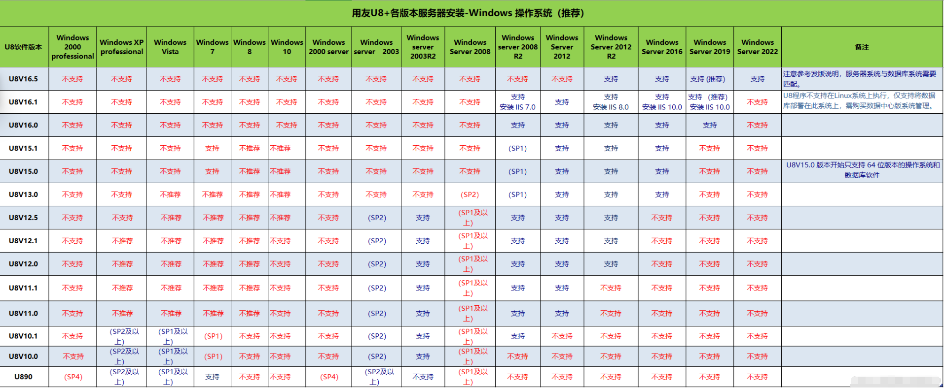 1、用友U8+各版本服务器安装-Windows 操作系统推荐:
