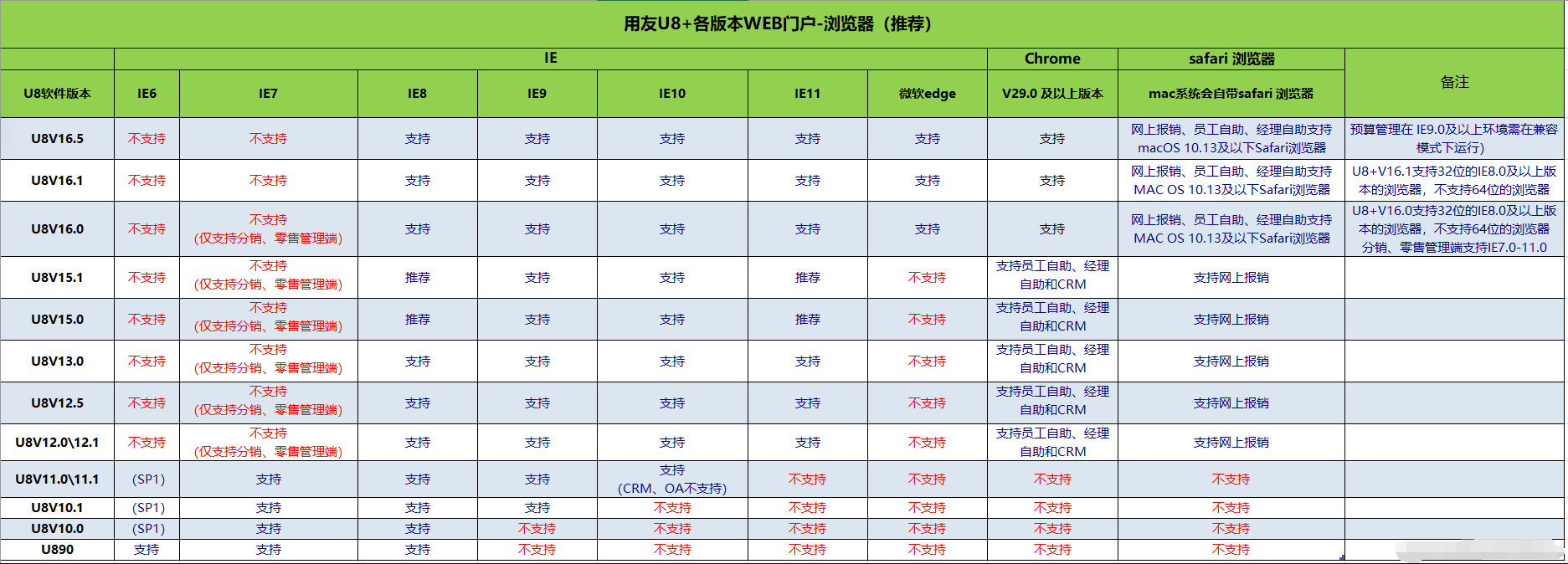 4、用友U8+各版本WEB门户-浏览器推荐:
