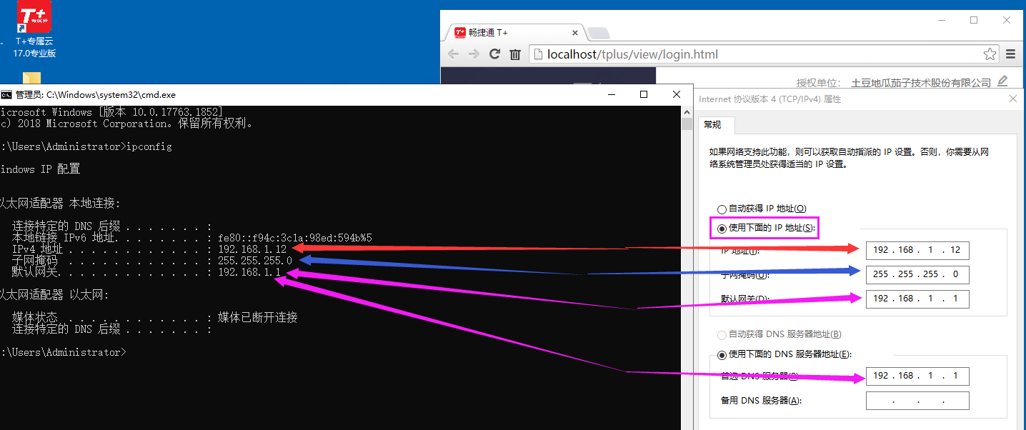 我们要在其他电脑登录或操作的话,就需要有固定IP地址才可以访问,我们本地就可以用http://localhost/tplus/view/login.html或者http://127.0.0.1/tplus/view/login.html 这样来登录,其他用户就不可以,那我们就需要固定IP地址才可以;其他用户呢,就需要直接输入服务器的ip和端口,例如http://192.168.1.251:8080/tplus/view/portal/portal.html