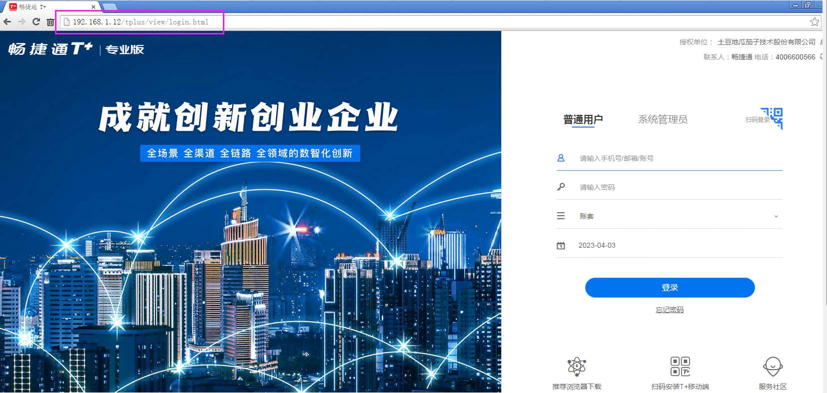 不需要安装客户端,内网客户端登陆:登录地址需要修改为:http://IP:端口号/tplus/login.aspx