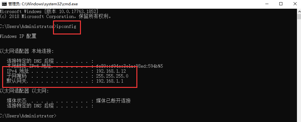 开始--运行--输入 cmd 回车----输入 ipconfig 回车,就会出现IP地址;如下图所示